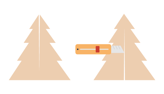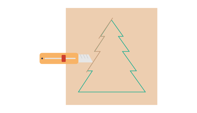 Ollóval, késsel vagy vonalzóval vágja ki a kartont a fa alakját követve. A tiszta vágás érdekében használja a legprecízebb szerszámját.