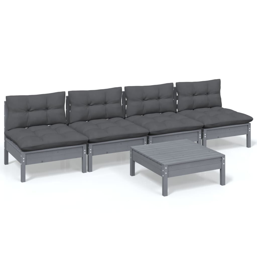 3096131 vidaXL 5 részes fenyőfa kerti ülőgarnitúra antracitszürke párnákkal