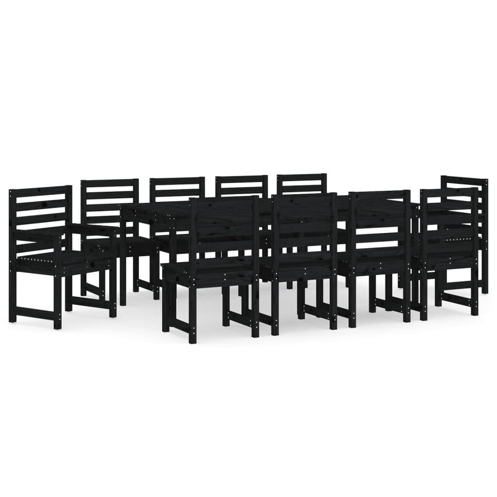 vidaXL 11 részes fekete tömör fenyőfa kerti étkezőgarnitúra
