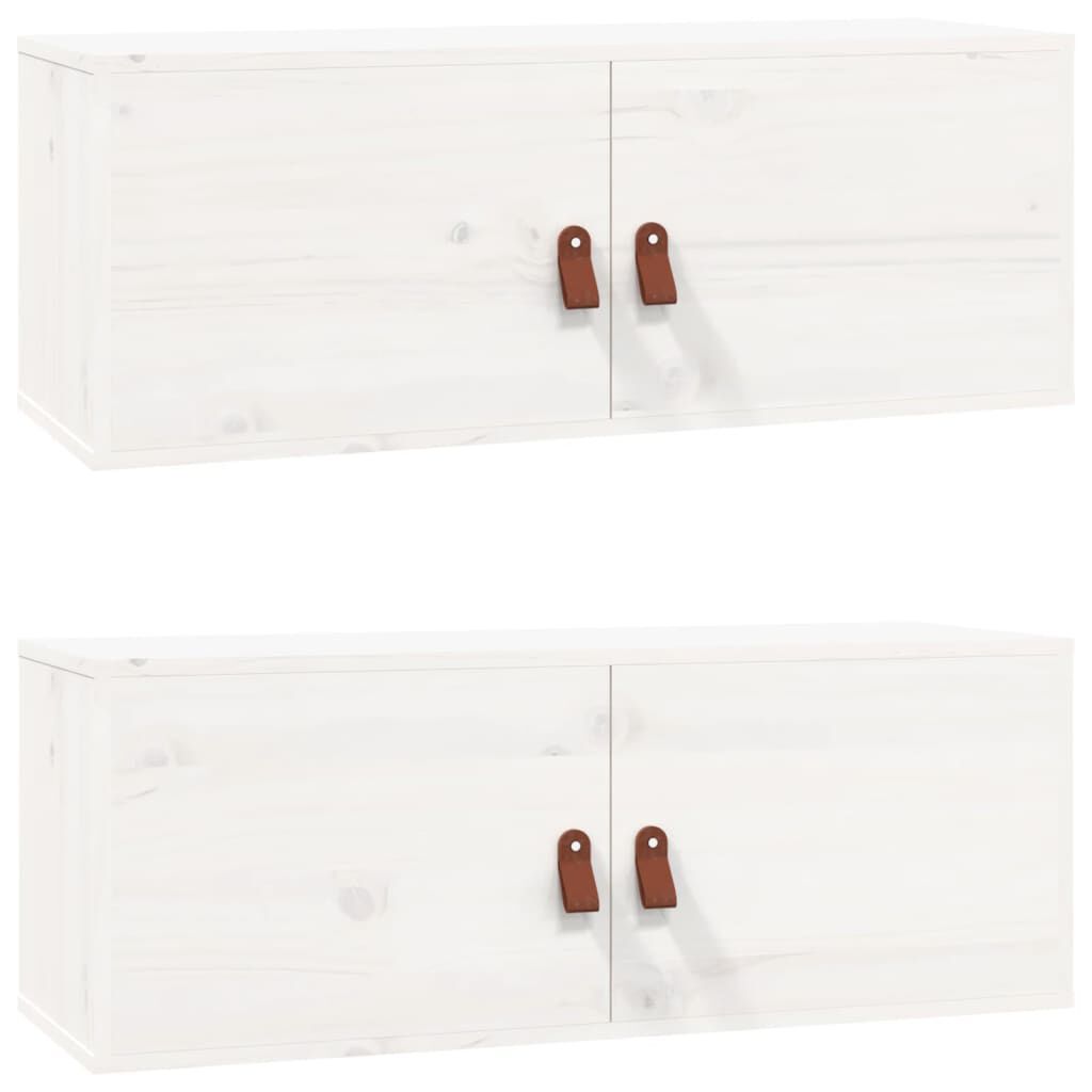 vidaXL 2 db fehér tömör fenyőfa faliszekrény 80 x 30 x 30 cm
