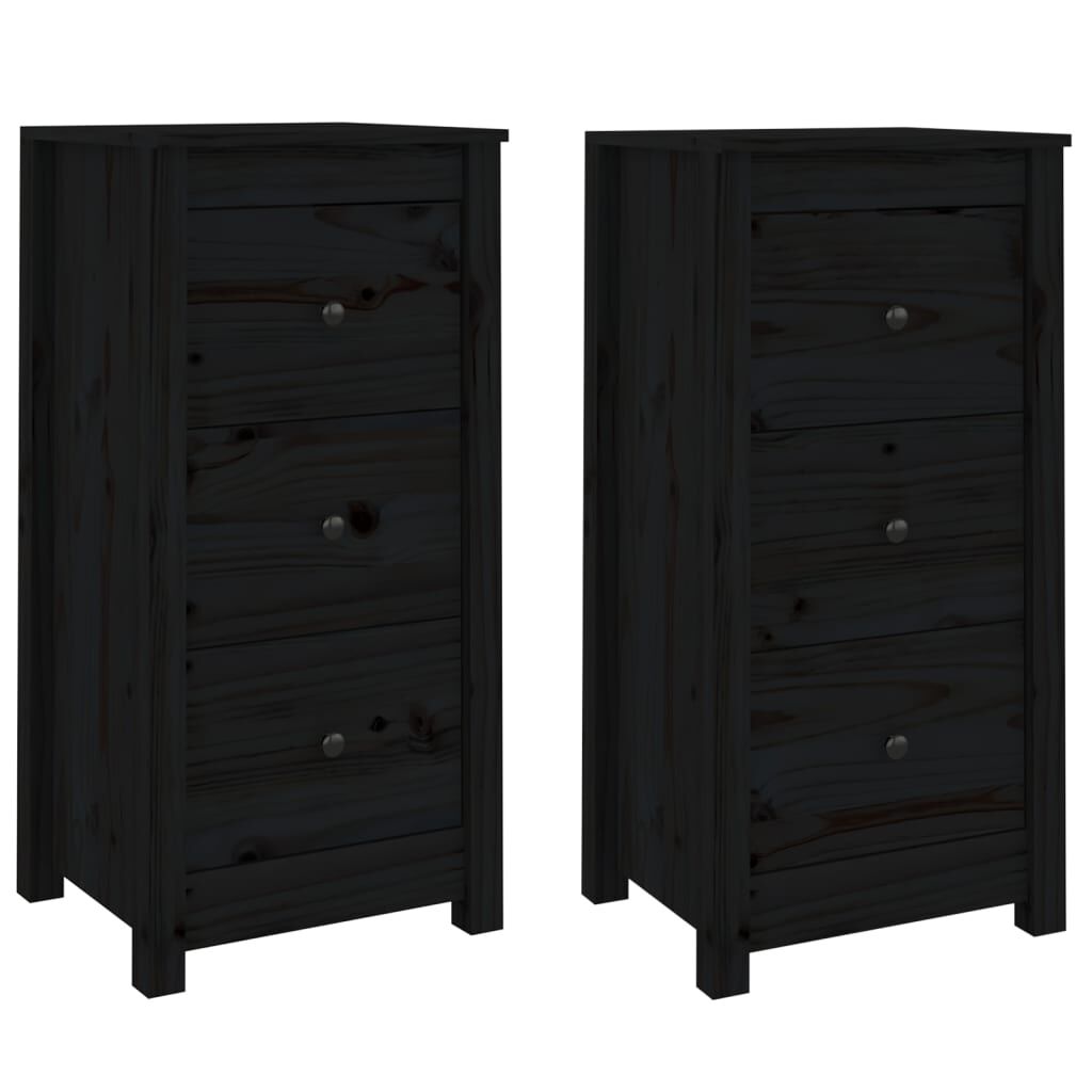 vidaXL 2 db fekete tömör fenyőfa tálalószekrény 40 x 35 x 80 cm
