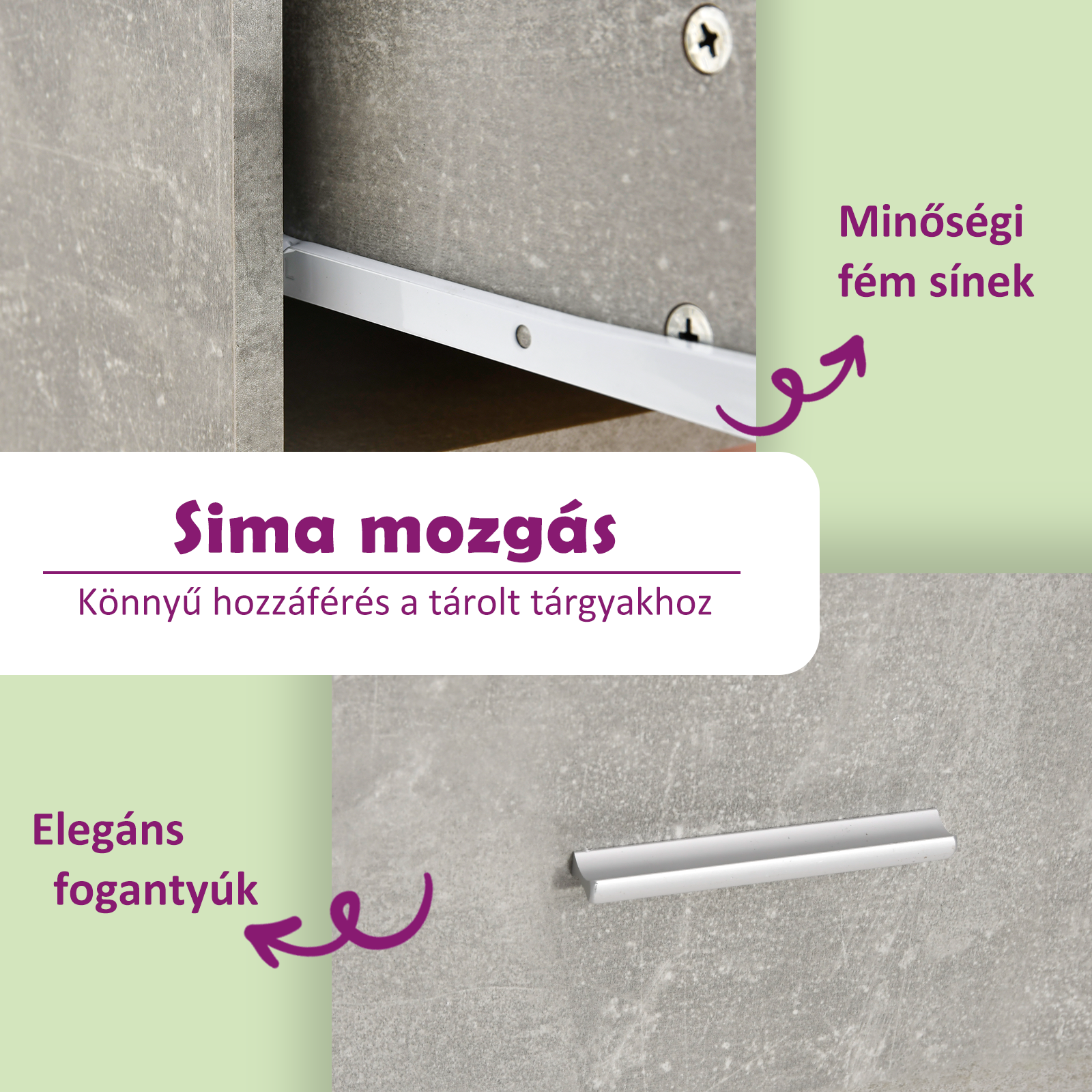 • Mérete (3 fiókos tálalószekrény): 30 x 30 x 70 cm (Szé x Mé x Ma)