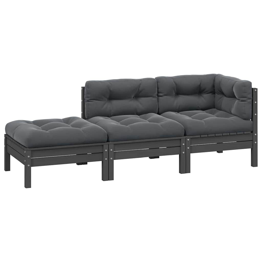 vidaXL 3 részes szürke tömör fenyőfa kerti ülőgarnitúra párnákkal