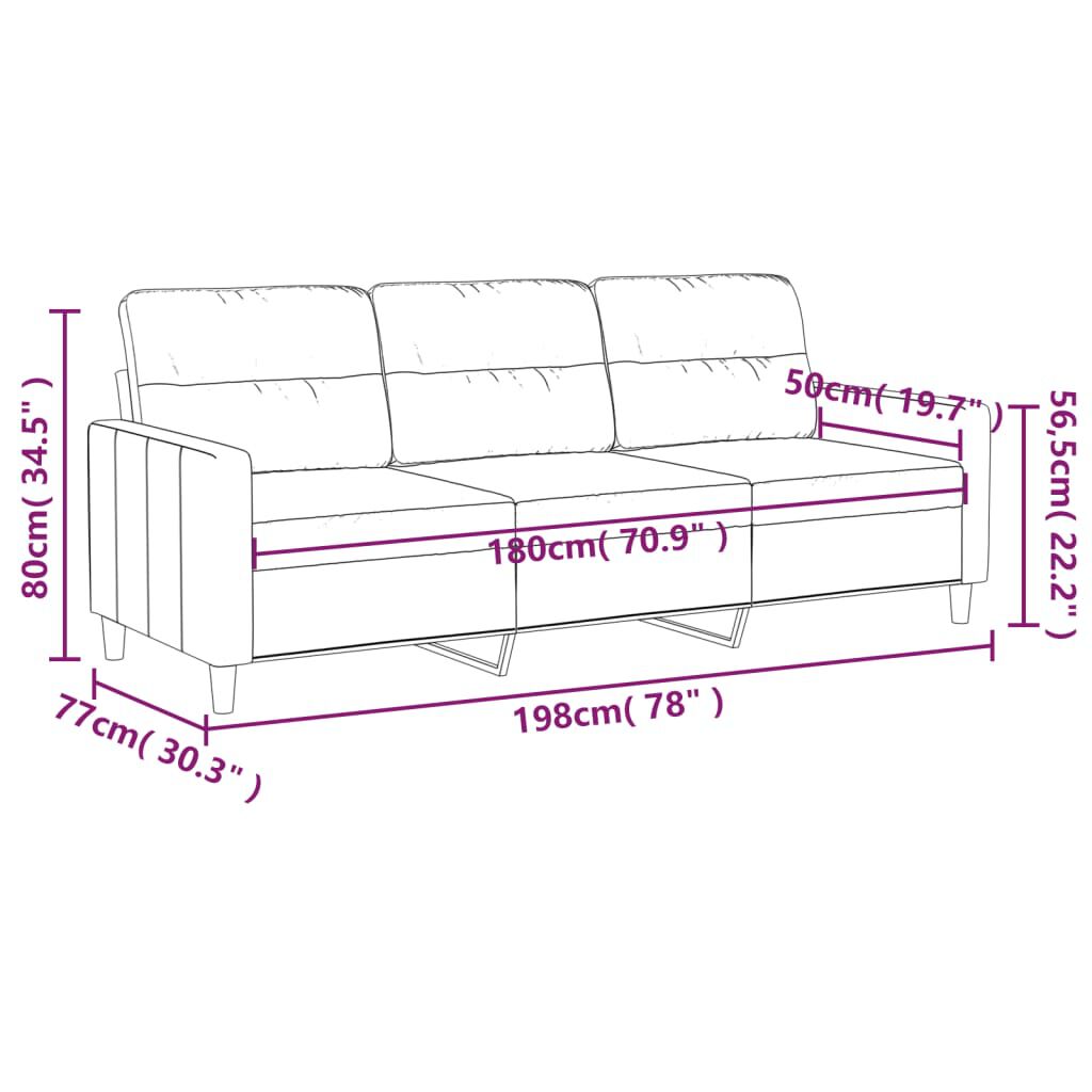 vidaXL 3 személyes fekete szövetkanapé 180 cm