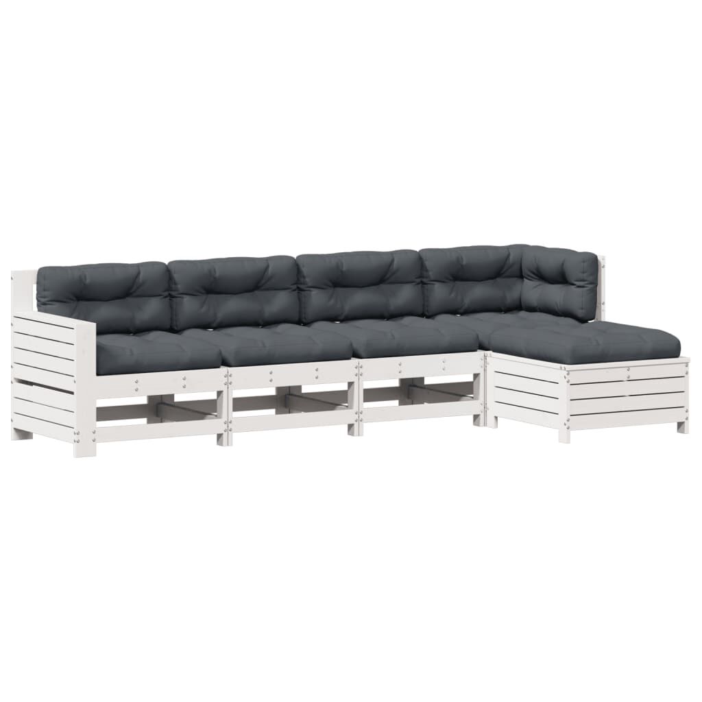 vidaXL 5 részes fehér tömör fenyőfa kerti pihenőgarnitúra párnákkal