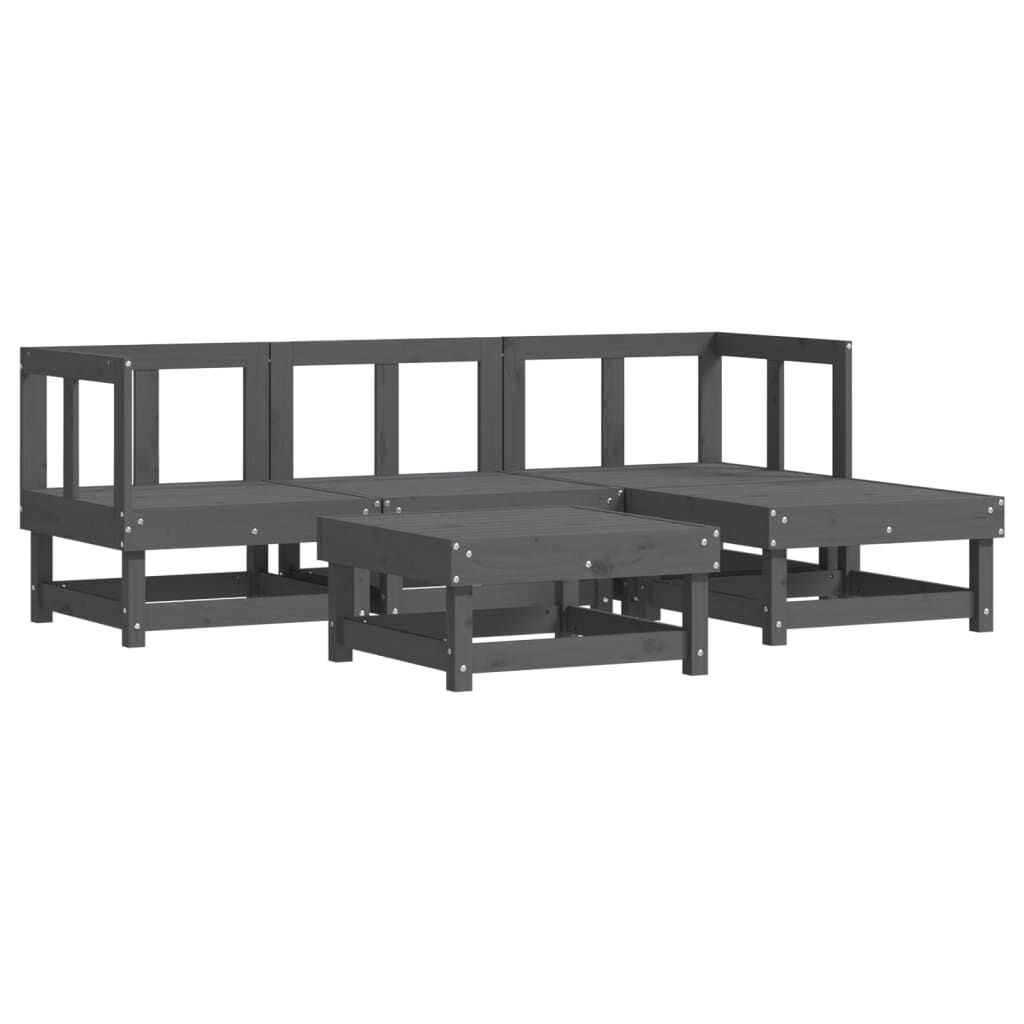 vidaXL 5 részes szürke tömör fenyőfa kerti ülőgarnitúra