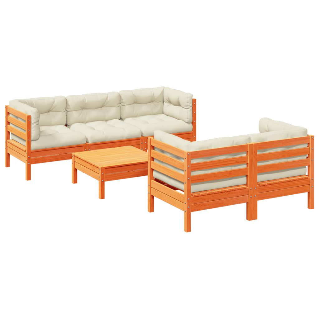 vidaXL 6 részes viaszbarna tömör fenyőfa kerti ülőgarnitúra párnákkal