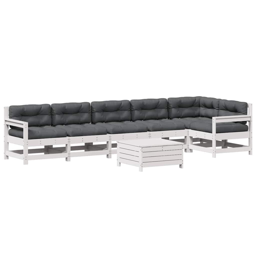 vidaXL 7 részes fehér tömör fenyőfa kerti ülőgarnitúra párnákkal