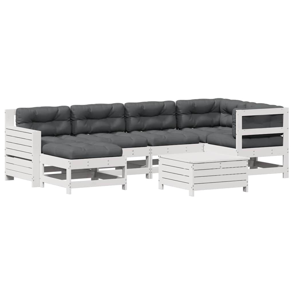 vidaXL 7 részes fehér tömör fenyőfa kerti ülőgarnitúra párnákkal