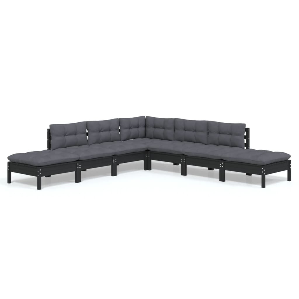 vidaXL 7 részes fekete fenyőfa kerti ülőgarnitúra párnákkal
