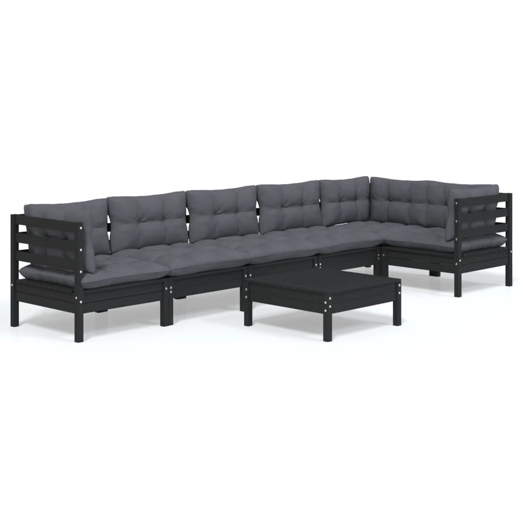 vidaXL 7 részes fekete fenyőfa kerti ülőgarnitúra párnákkal
