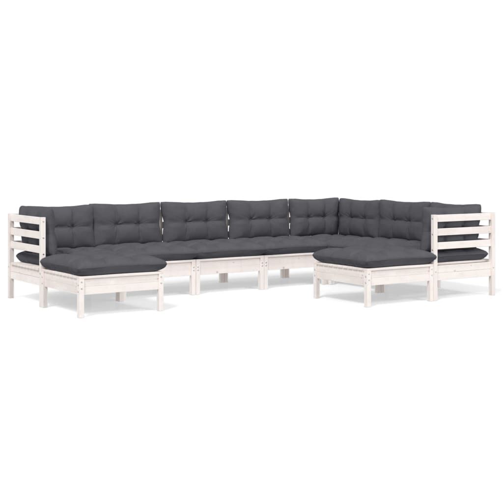 vidaXL 9 részes fehér tömör fenyőfa kerti ülőgarnitúra párnákkal