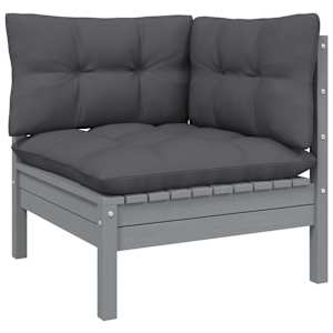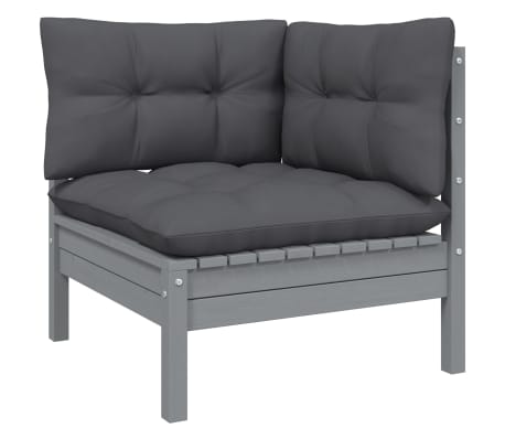 vidaXL 9 részes szürke tömör fenyőfa kerti ülőgarnitúra párnákkal