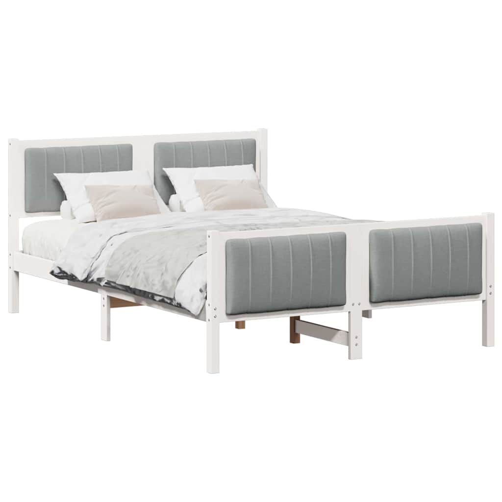 vidaXL Ágykeret Fehér és világosszürke 140 x 200 cm Tömör fenyőfa