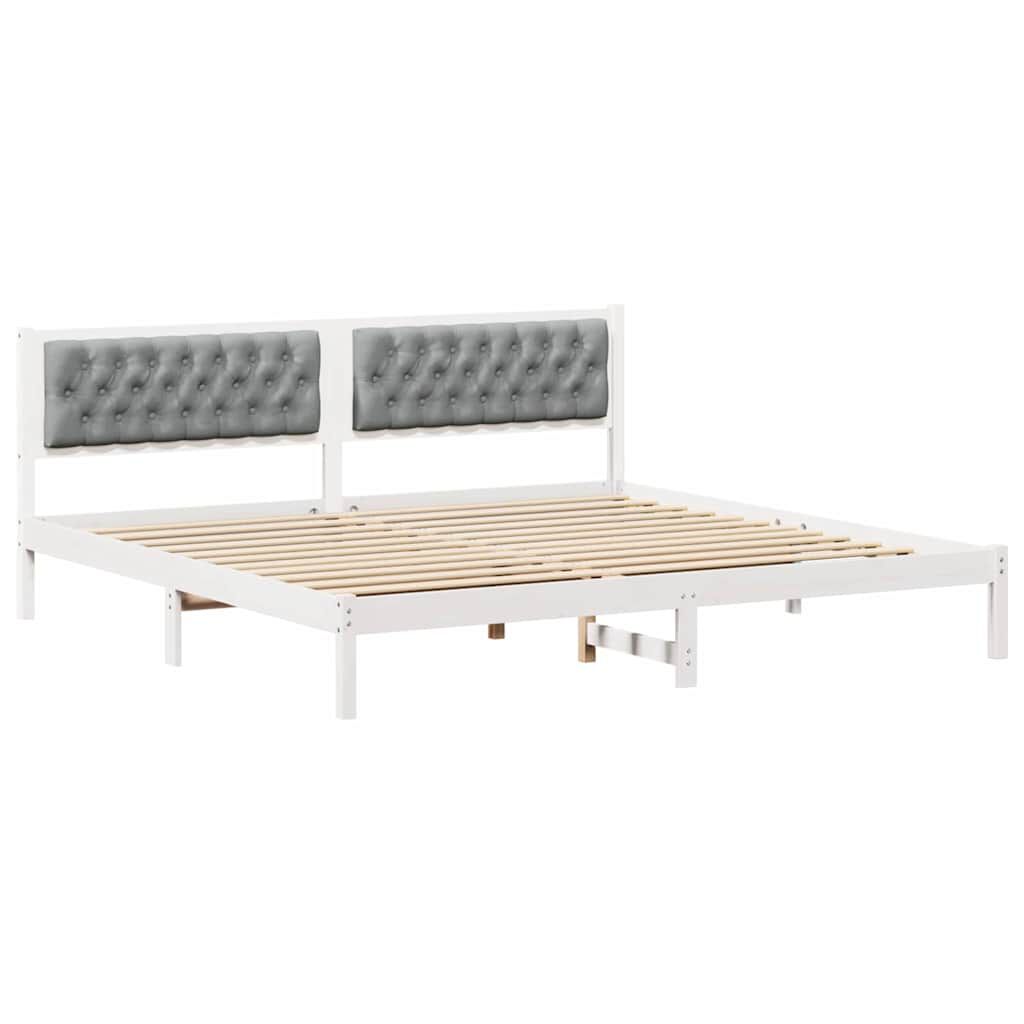 vidaXL Ágykeret fejtámlával Világosszürke 200 x 200 cm Tömör fenyőfa