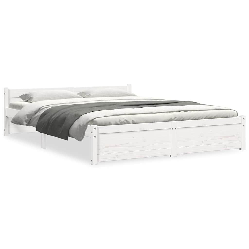 vidaXL Double fehér tömör fa ágykeret 135 x 190 cm