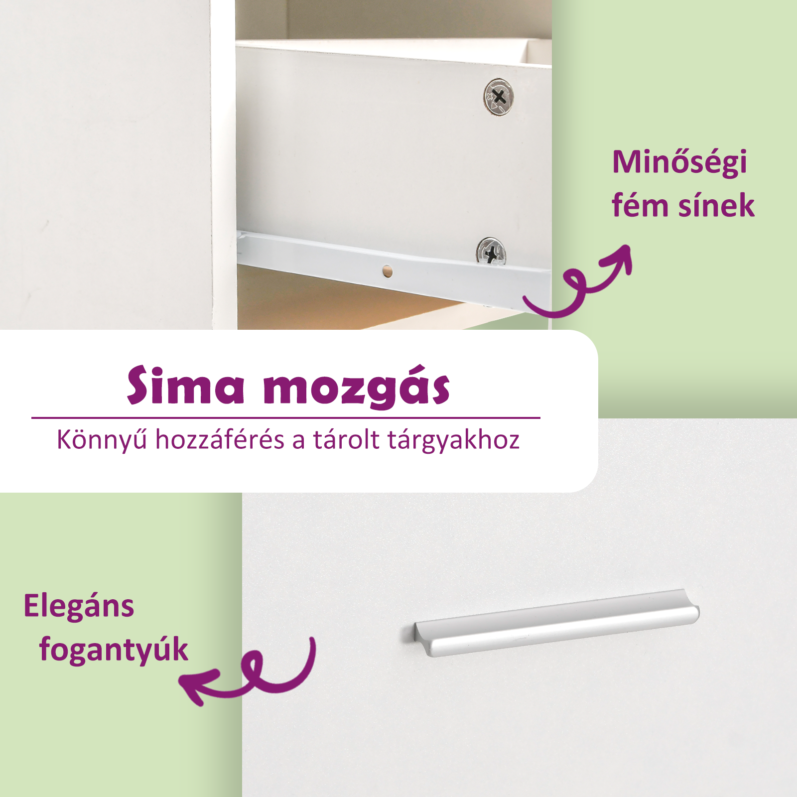 Ez az éjjeliszekrény stabil és masszív. Az éjjeliszekrény két fiókkal és egy polccal rendelkezik, amelyek bőséges helyet kínálnak alapvető holmijai kézközelben történő rendezett tárolásához. Nedves ruhával könnyen tisztítható.
