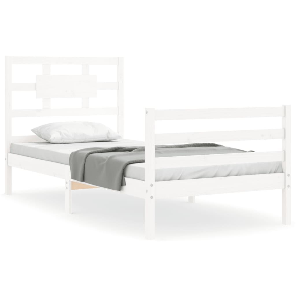 vidaXL fehér tömör fa ágykeret fejtámlával 90 x 200 cm