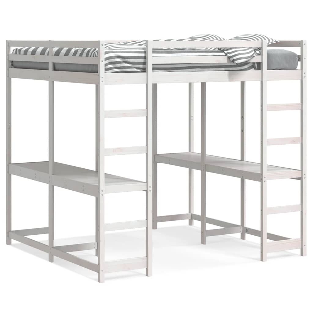 vidaXL fehér tömör fenyőfa galériaágy asztallal és létrával 140x200 cm
