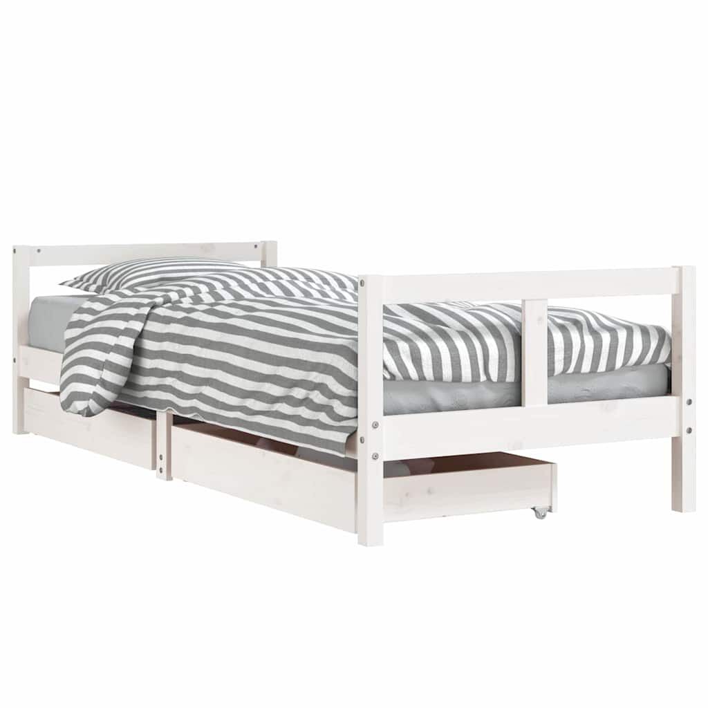 vidaXL fehér tömör fenyőfa gyerekágykeret fiókokkal 80 x 200 cm