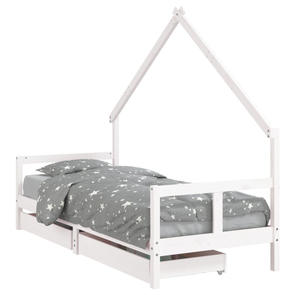 vidaXL fehér tömör fenyőfa gyerekágykeret fiókokkal 80 x 200 cm