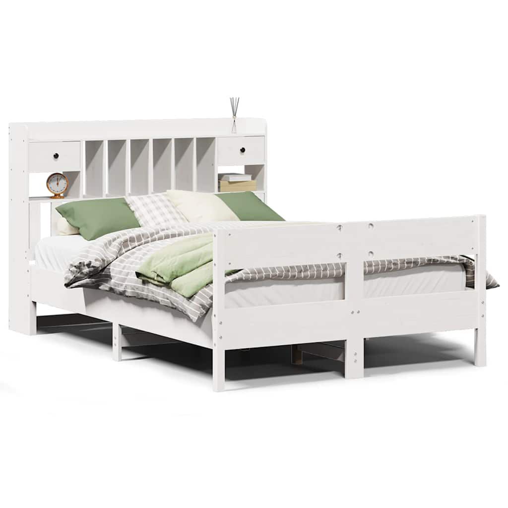 vidaXL fehér tömör fenyőfa könyvespolcos ágy matrac nélkül 140x200 cm