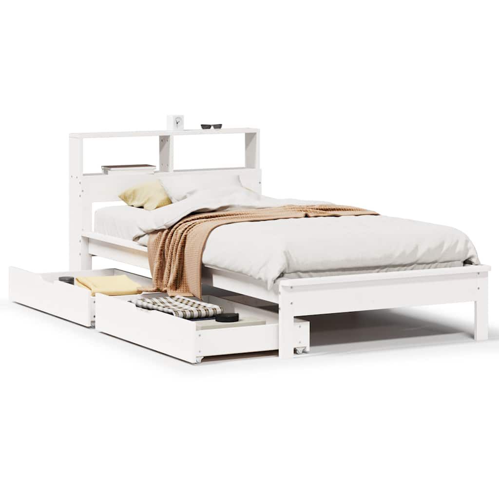 vidaXL fehér tömör fenyőfa könyvespolcos ágy matrac nélkül 90 x 190 cm