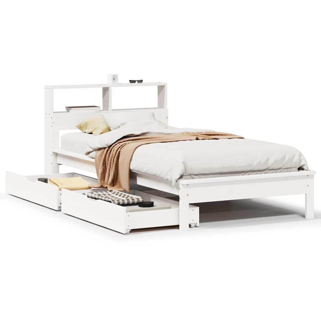 vidaXL fehér tömör fenyőfa könyvespolcos ágy matrac nélkül 90 x 200 cm