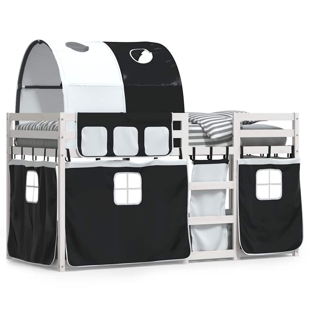 vidaXL fehér/fekete tömör fenyőfa emeletes ágy függönyökkel 90x190 cm