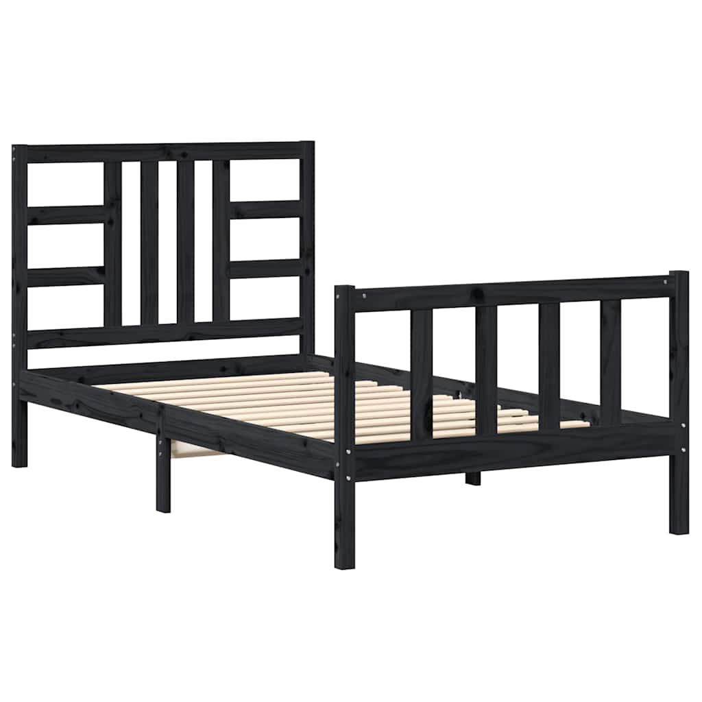 vidaXL fekete tömör fa ágykeret fejtámlával 100 x 200 cm