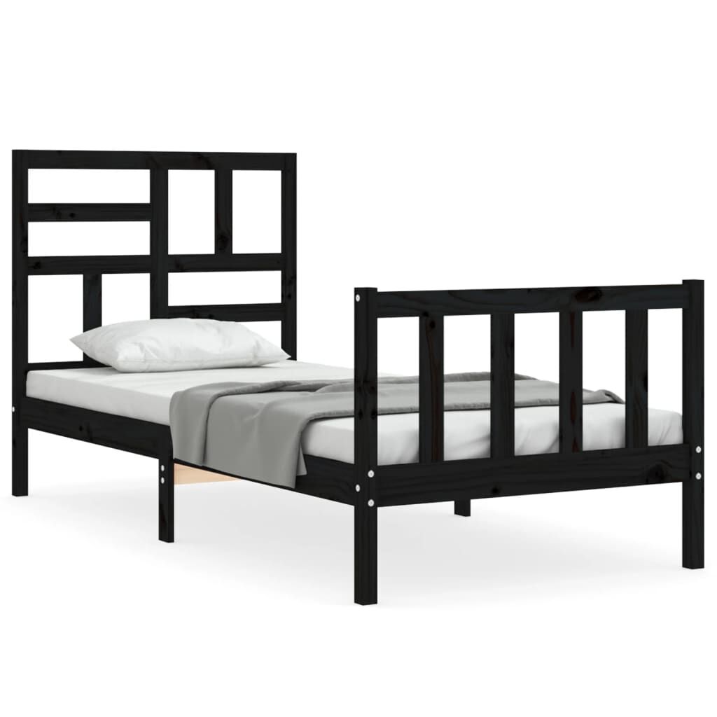 vidaXL fekete tömör fa ágykeret fejtámlával 100 x 200 cm