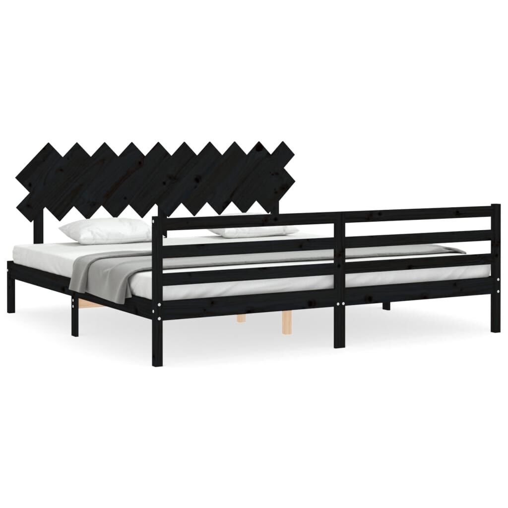 vidaXL fekete tömör fa ágykeret fejtámlával 200 x 200 cm
