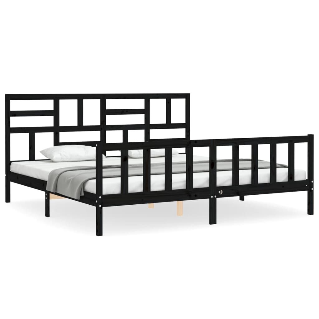 vidaXL fekete tömör fa ágykeret fejtámlával Super King Size