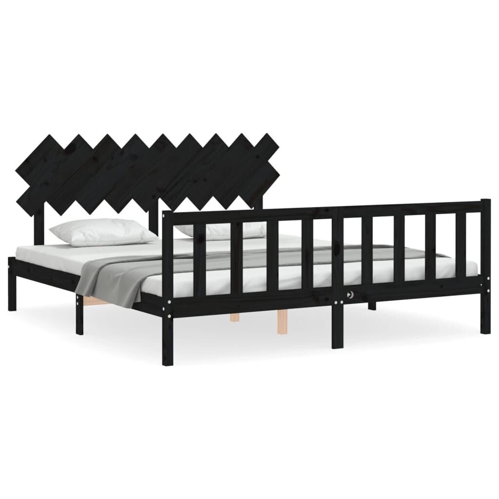 vidaXL fekete tömör fa ágykeret fejtámlával Super King Size