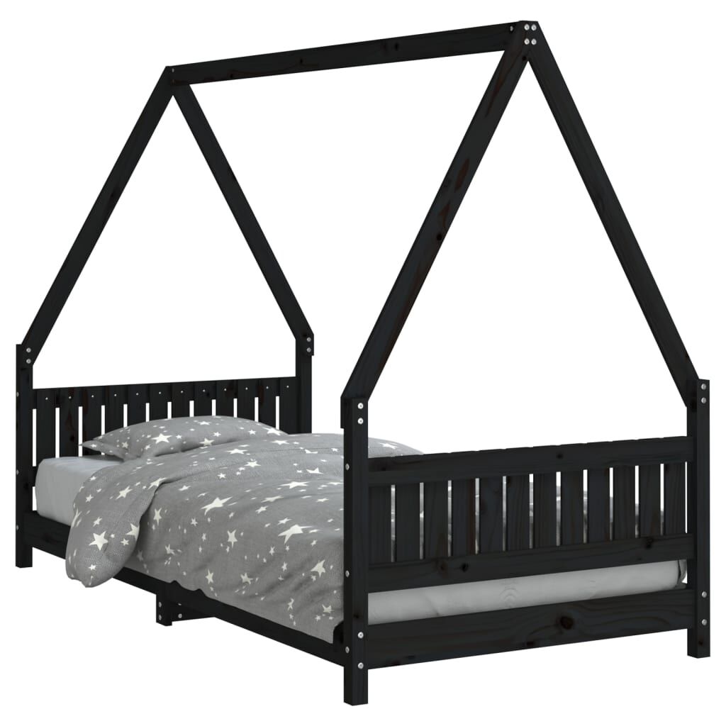 vidaXL fekete tömör fenyőfa gyerekágykeret 90 x 190 cm