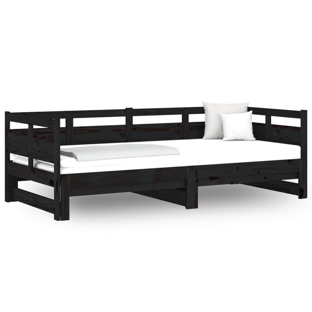 vidaXL fekete tömör fenyőfa kihúzható kanapéágy 2 x (90 x 190) cm