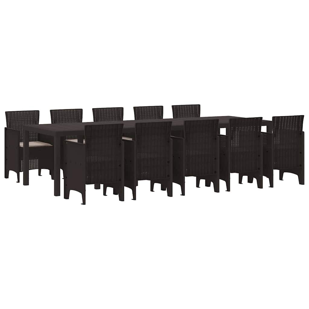 vidaXL Kert étkező szett párnával 11 pcs Barna és taupe Poli rattan