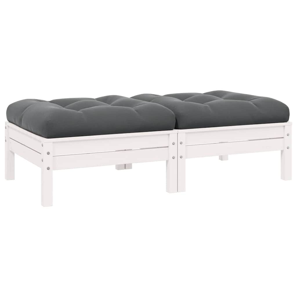 vidaXL kétszemélyes fehér tömör fenyőfa kerti kanapé párnákkal