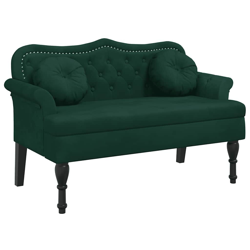 vidaXL sötétzöld bársony pad párnákkal 120,5 x 65 x 75 cm