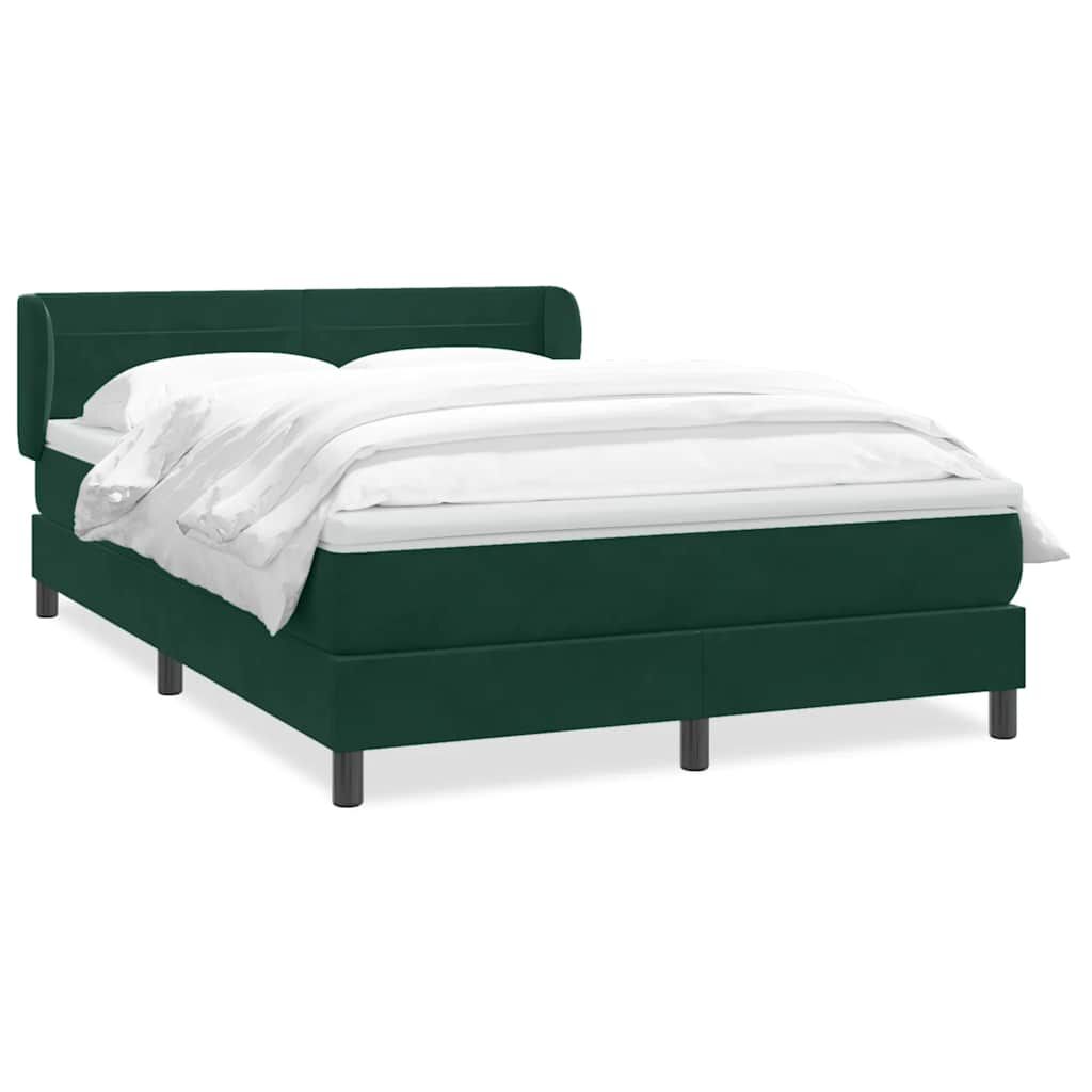 vidaXL Sötétzöld bársony rugós ágy matraccal 140x210 cm