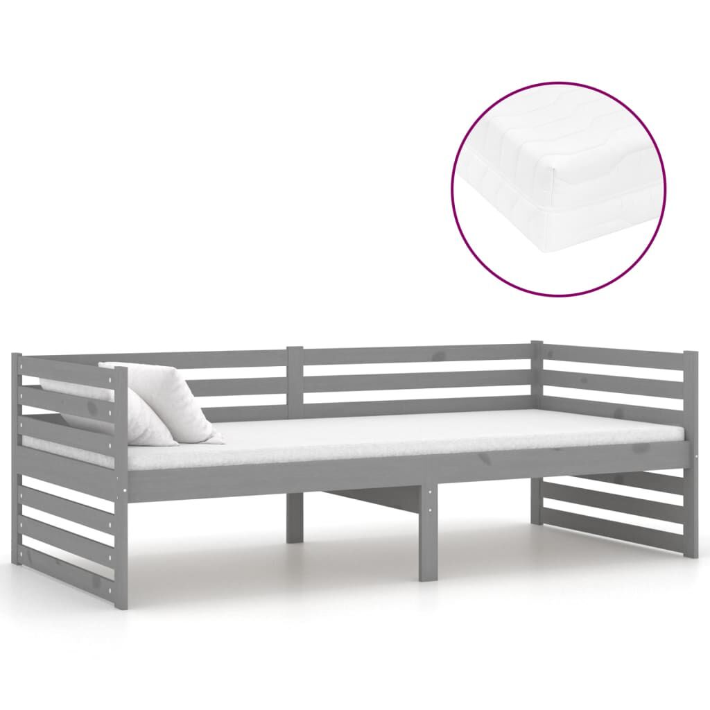 vidaXL szürke tömör fenyőfa dívány matraccal 90 x 200 cm