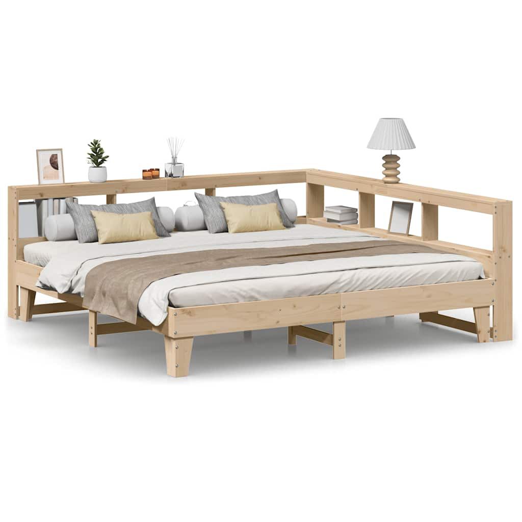 vidaXL tömör fenyőfa könyvespolcos ágy matrac nélkül 200 x 200 cm