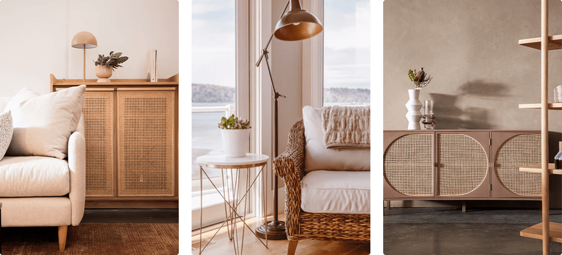 A vesszőfonat és rattan trend sokoldalúsága által tűnik ki, hisz könnyed és szuper tartós. A vesszőfonat egy fonott, míg a rattan magában egy természetes anyag. Manapság a szintetikus rattant használják leginkább, mert környezetbarátabb. Egyéb olyan természetes anyagok mellett, mint például a juta vagy a bambusz, a vesszőfonat egyszerűen csak ragyog, valamint megteremteni a kívánt hangulatot.